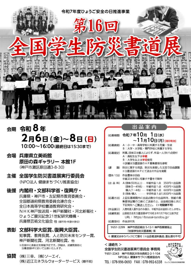 【主 催】 全国学生防災書道展実行委員会・特定非営利活動法人 健康まちづくり推進協会